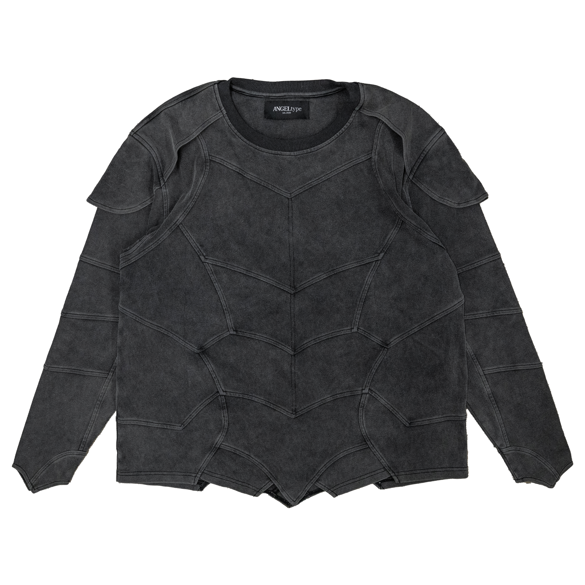 ✦ Features: Chestplate inspired paneling, double layer shoulders, pigment-dyed finish, paneled sleeve construction