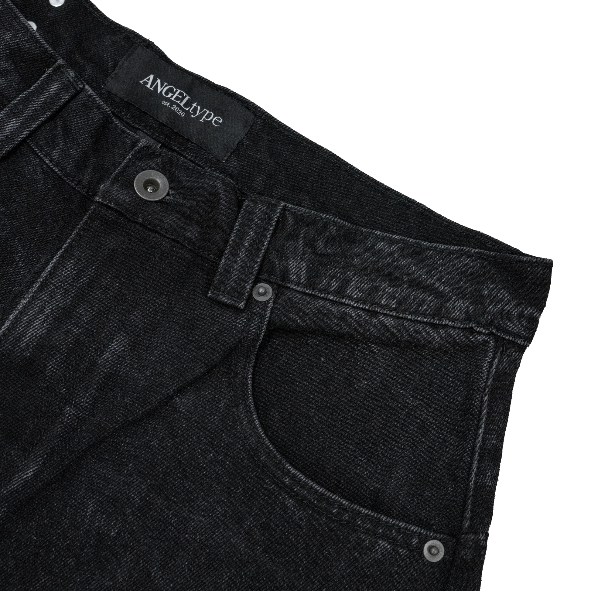 ✦ Features: Silkscreen printed cat pattern, brass YKK zipper, leather belt patch, two logo-lined front pockets, two oversized back pockets, antique silver-tone hardware, light stonewash