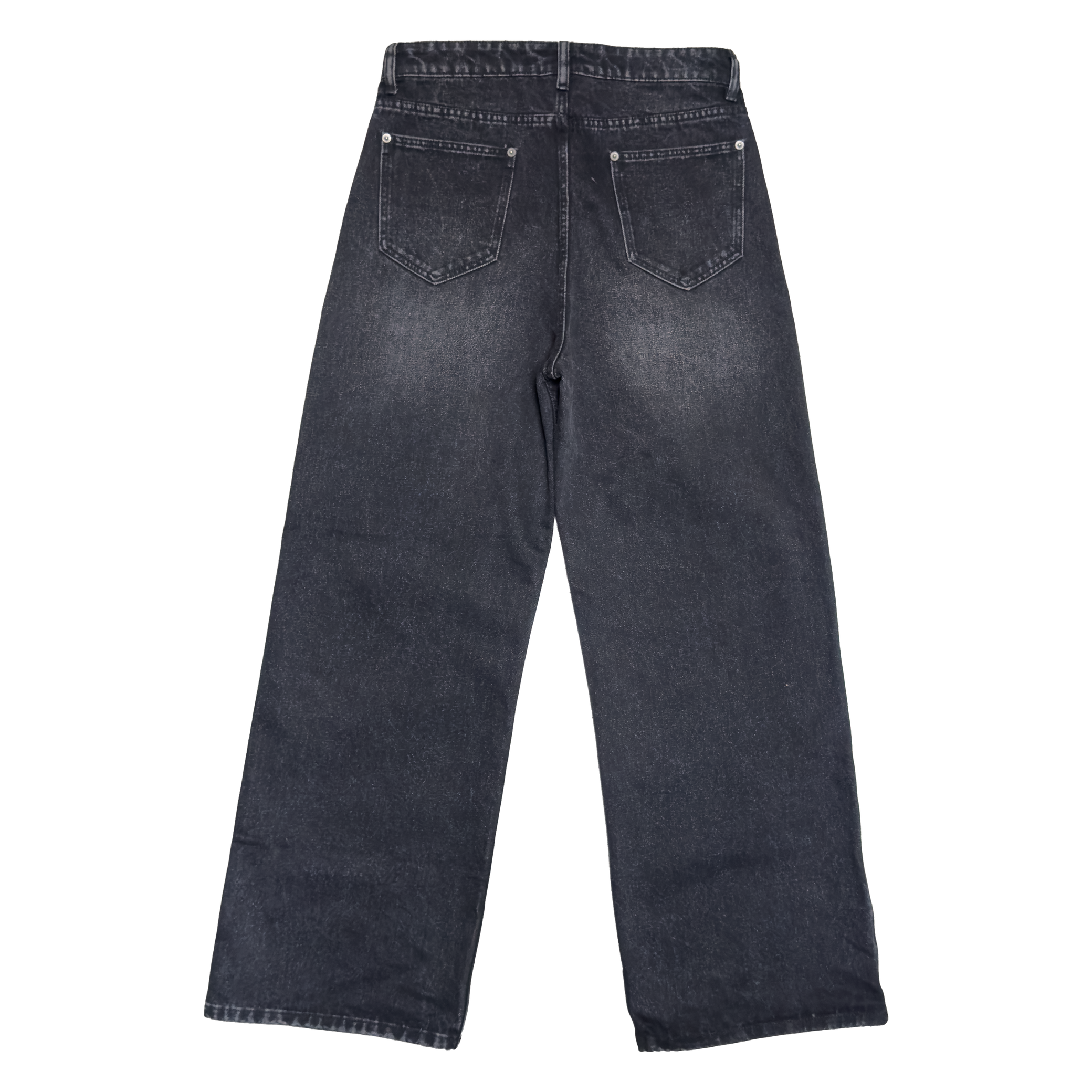The first sample of the 2.0 wide leg jeans. Fancy dual shank button and rivets, slight wash.