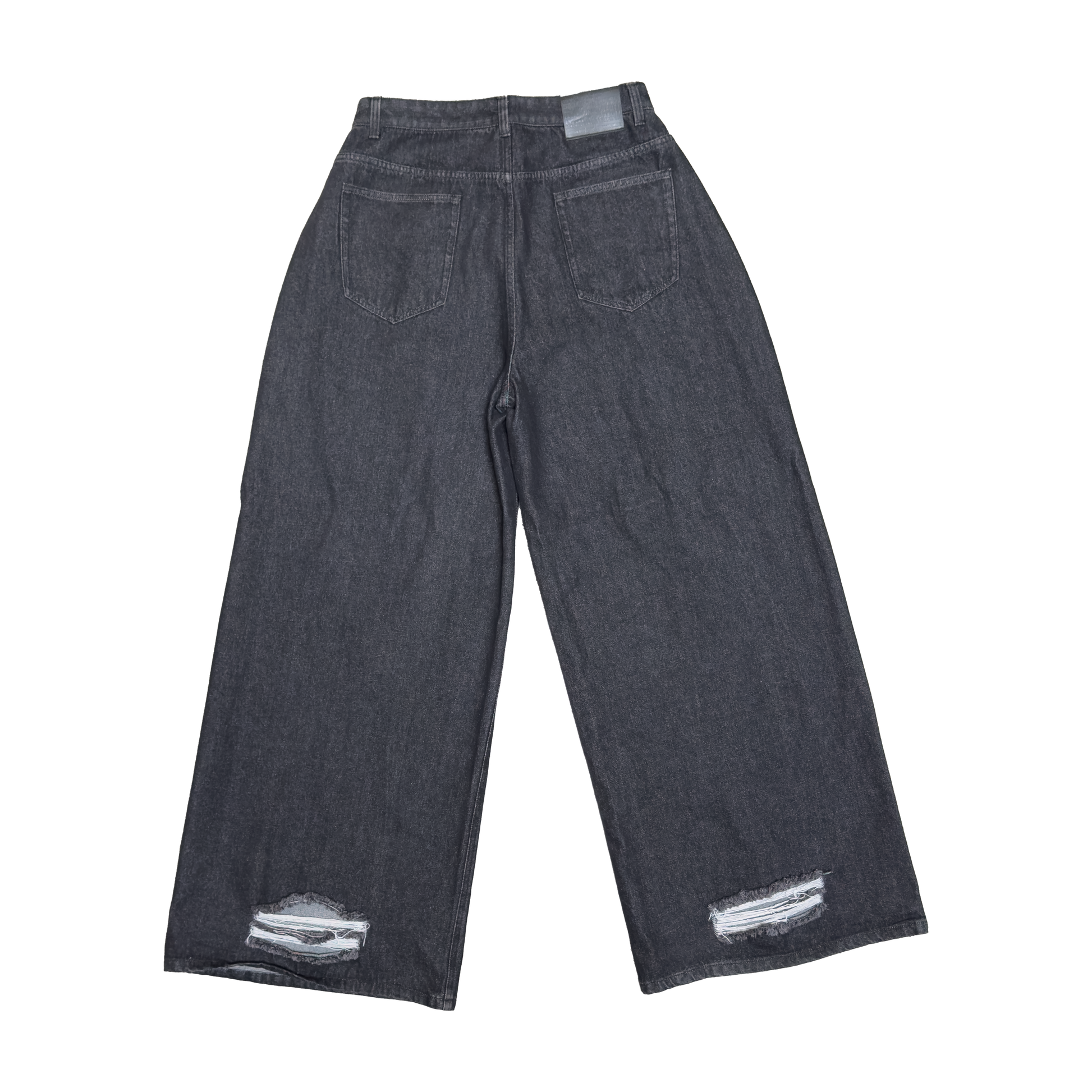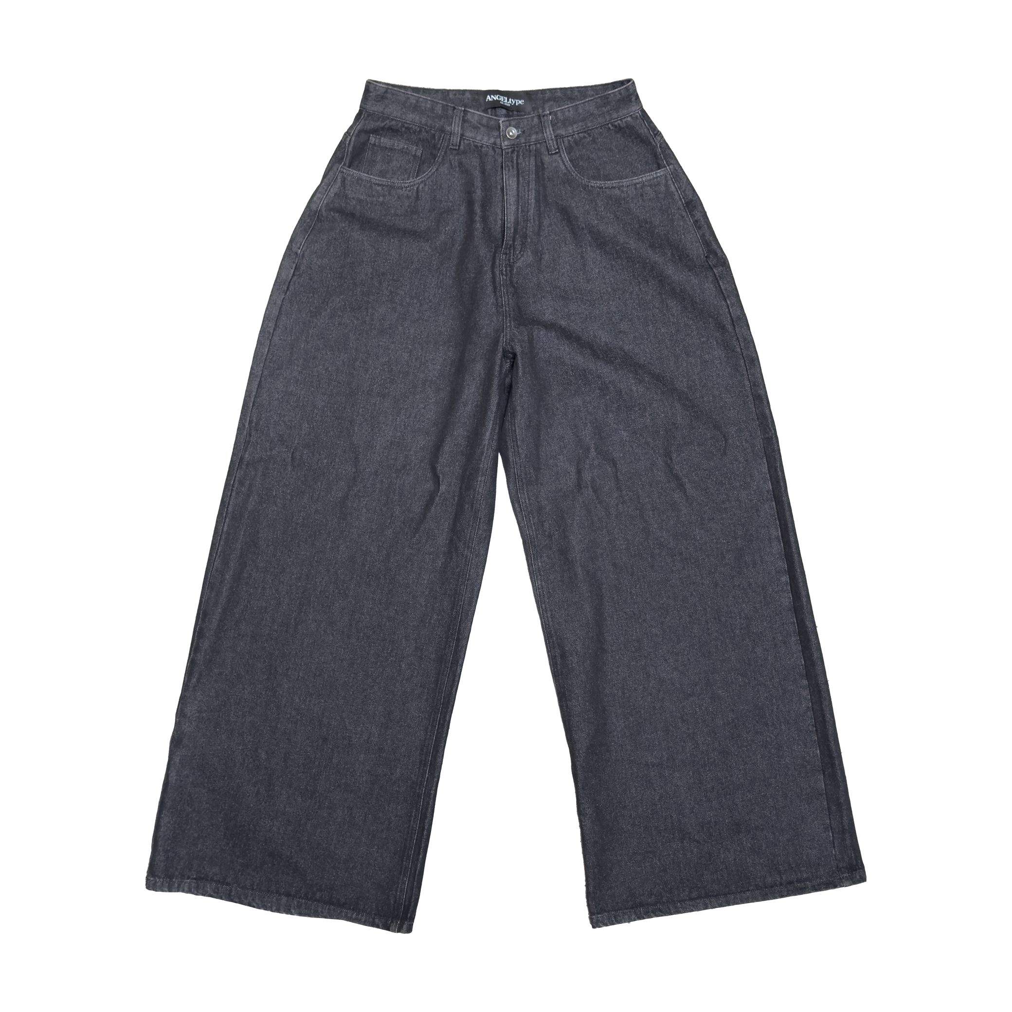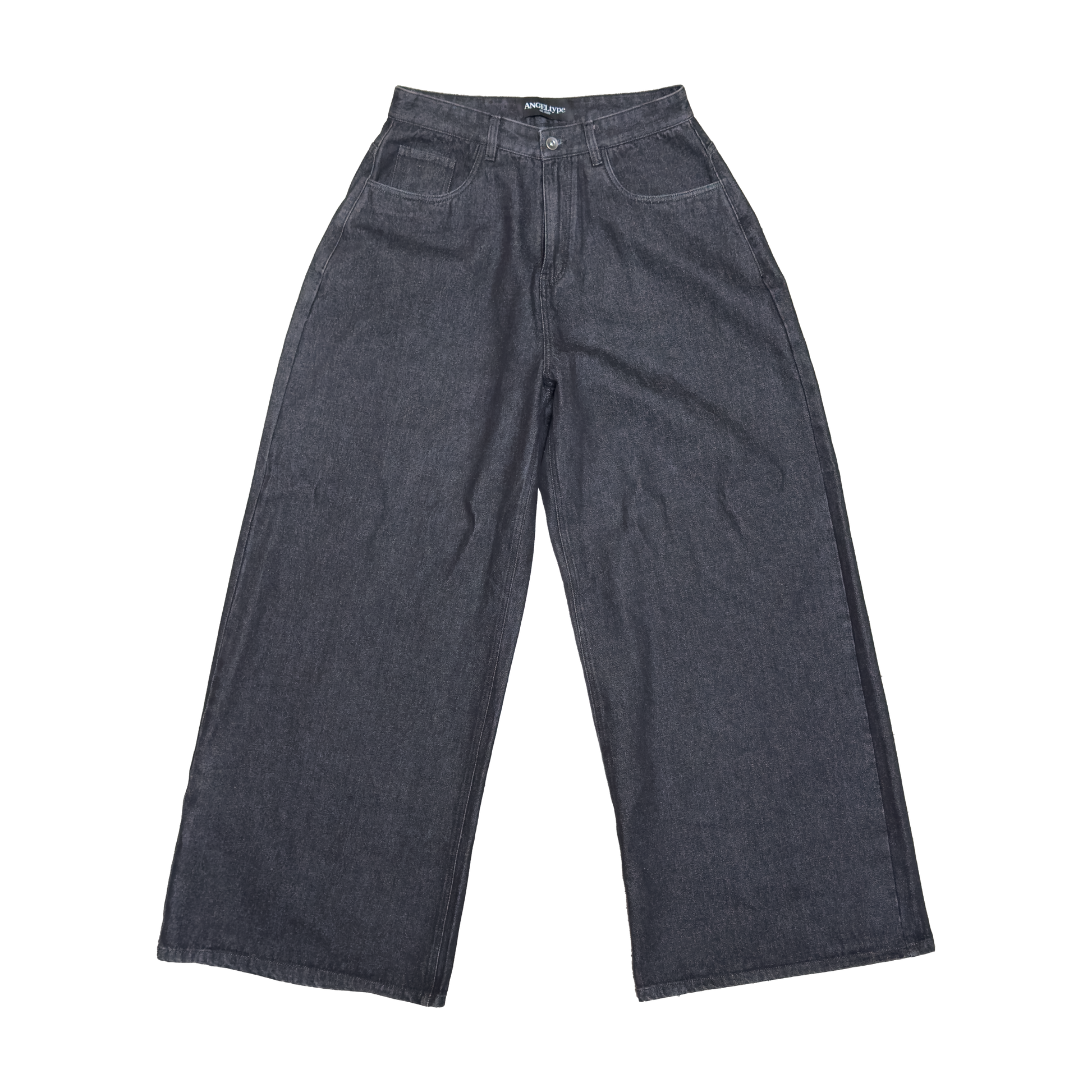Very, very, very wide jeans. Inorganic heel bite, 5-pockets, YKK main zipper, dual shank button and nice rivets.