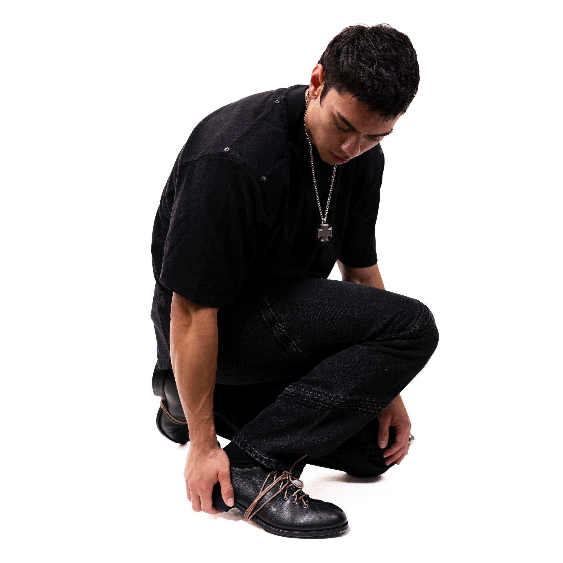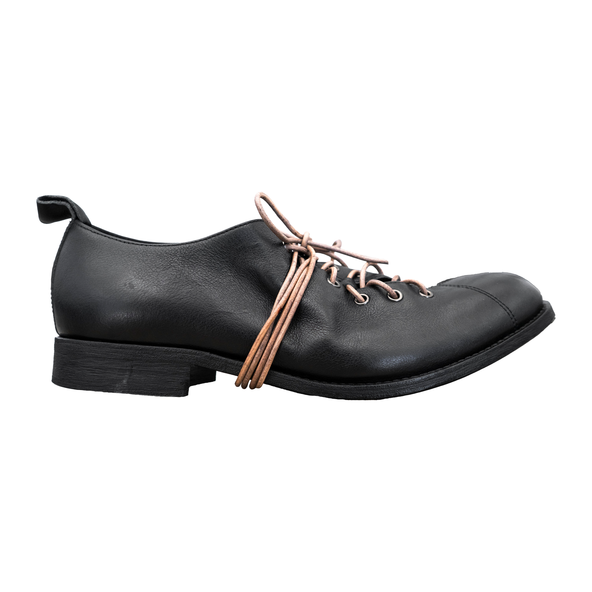 每双鞋均在 The Old Curiosity Shop 位于东京的工坊小批量生产。这款鞋采用全粒面牛皮制成,弧形系带系统从鞋头内侧包裹,并向鞋舌上方弯曲,并以天然绳状皮革系带。倾斜的 Vero Cuoio 鞋底和叠层皮革鞋跟沿袭了传统的英式结构,而饰有锁子甲图案的不锈钢鞋头和同色系拉环则将设计与现代实用性完美融合。最终呈现出的鞋型会随着时间的推移略微变形——这是两大品牌共同传承的经典工艺、穿着舒适度和持久耐用性的完美诠释。
