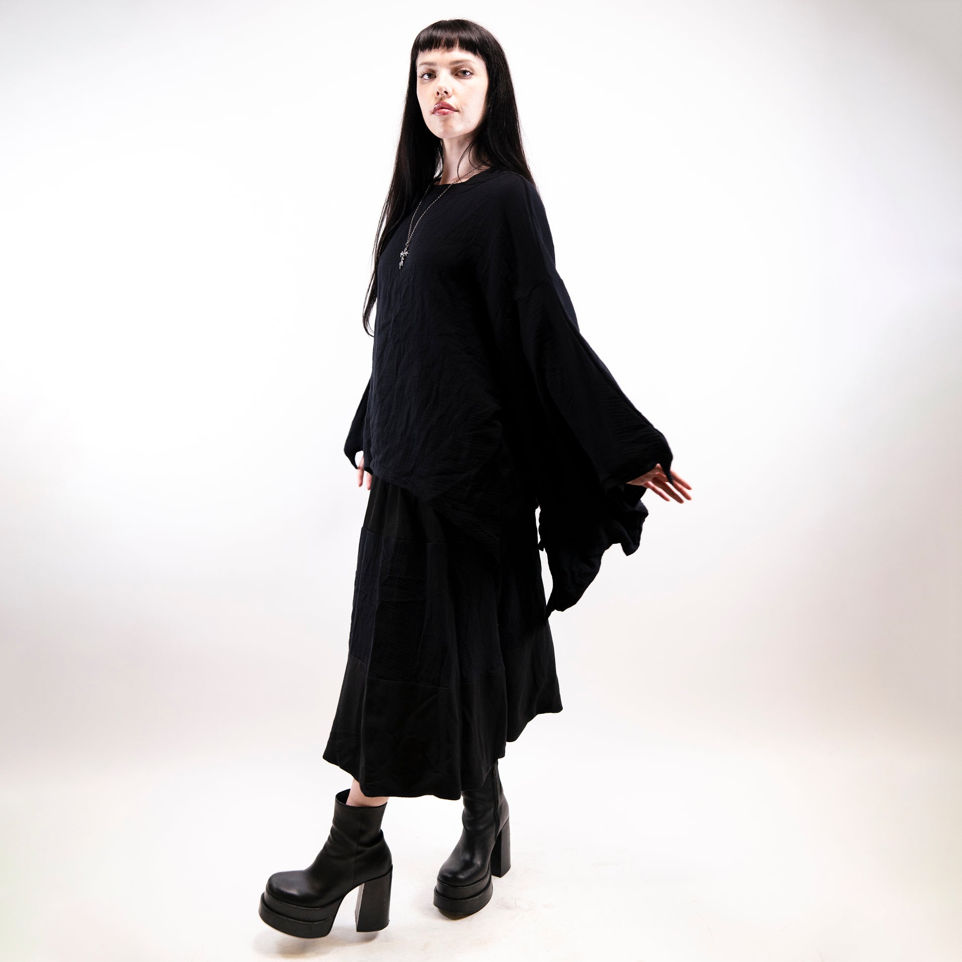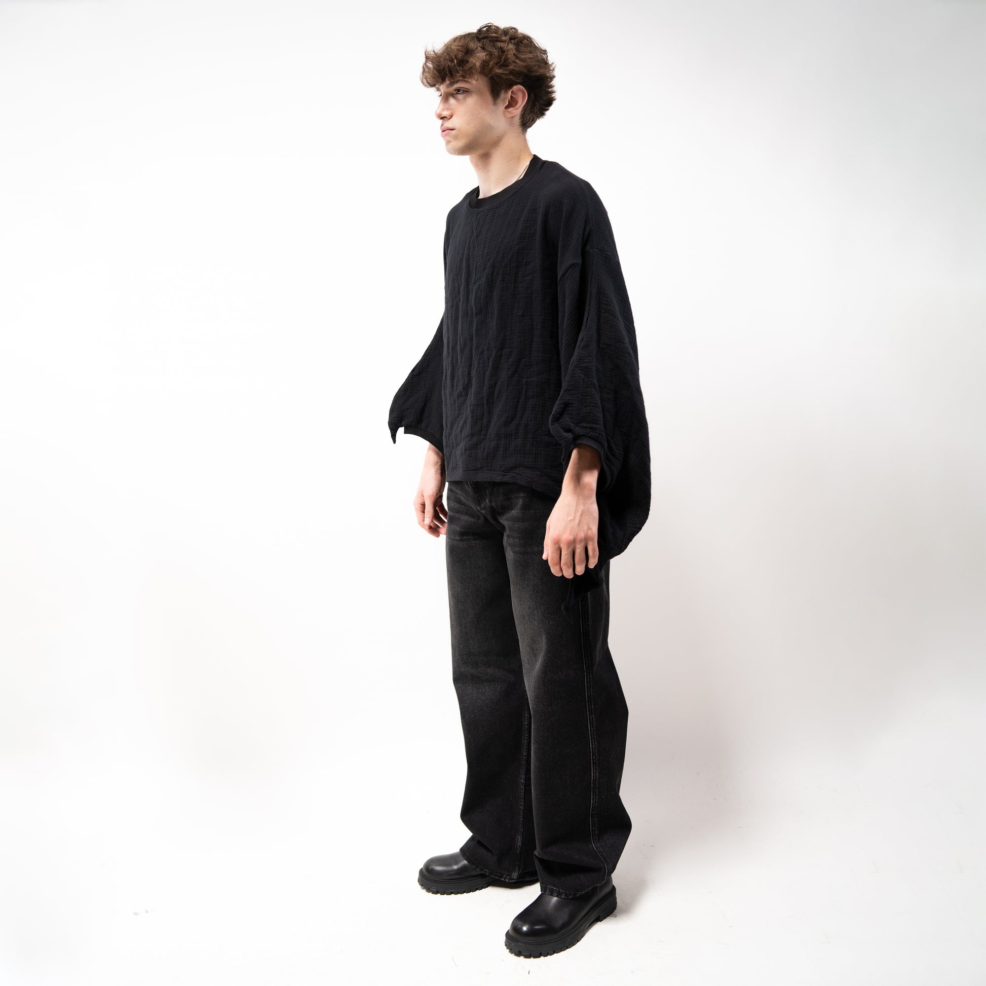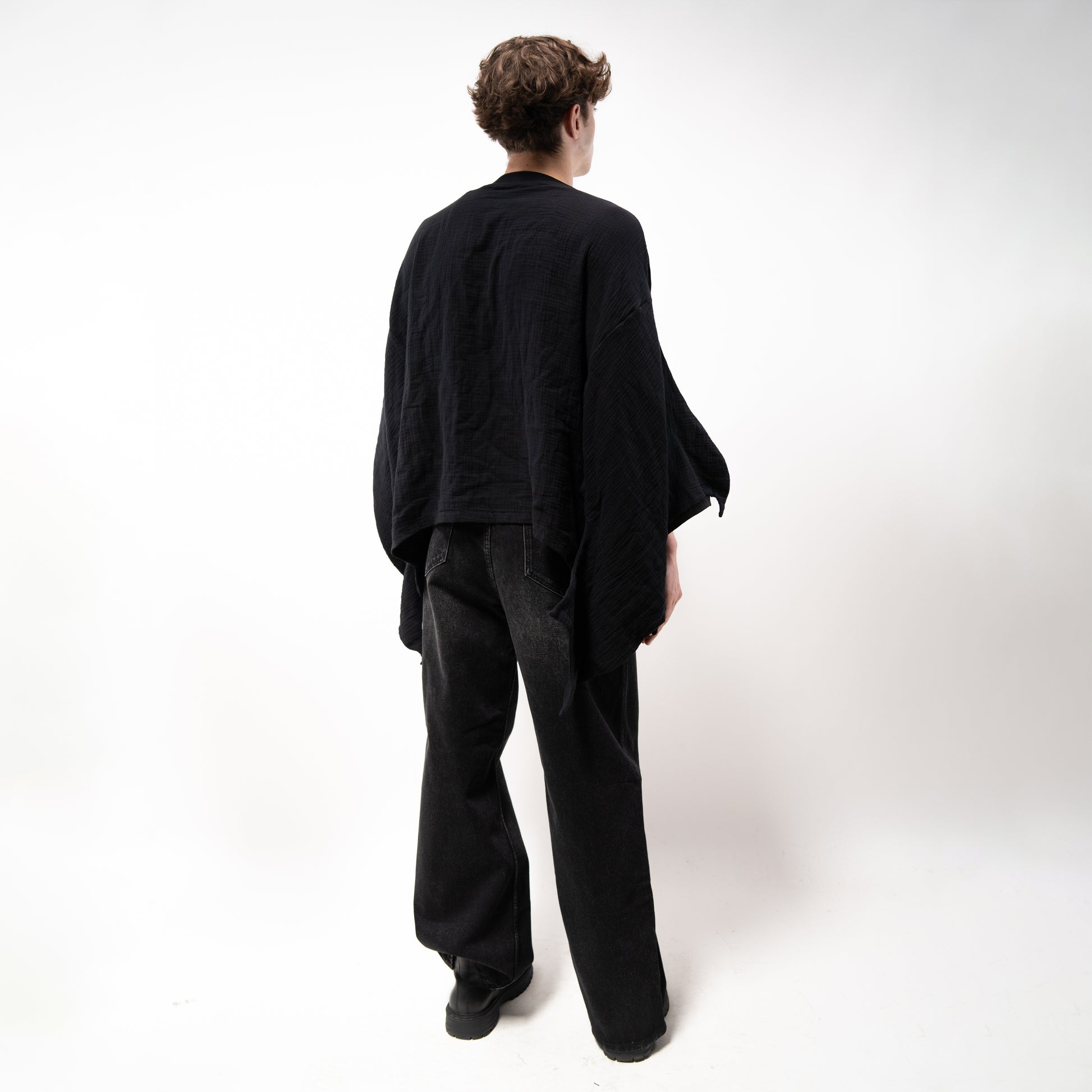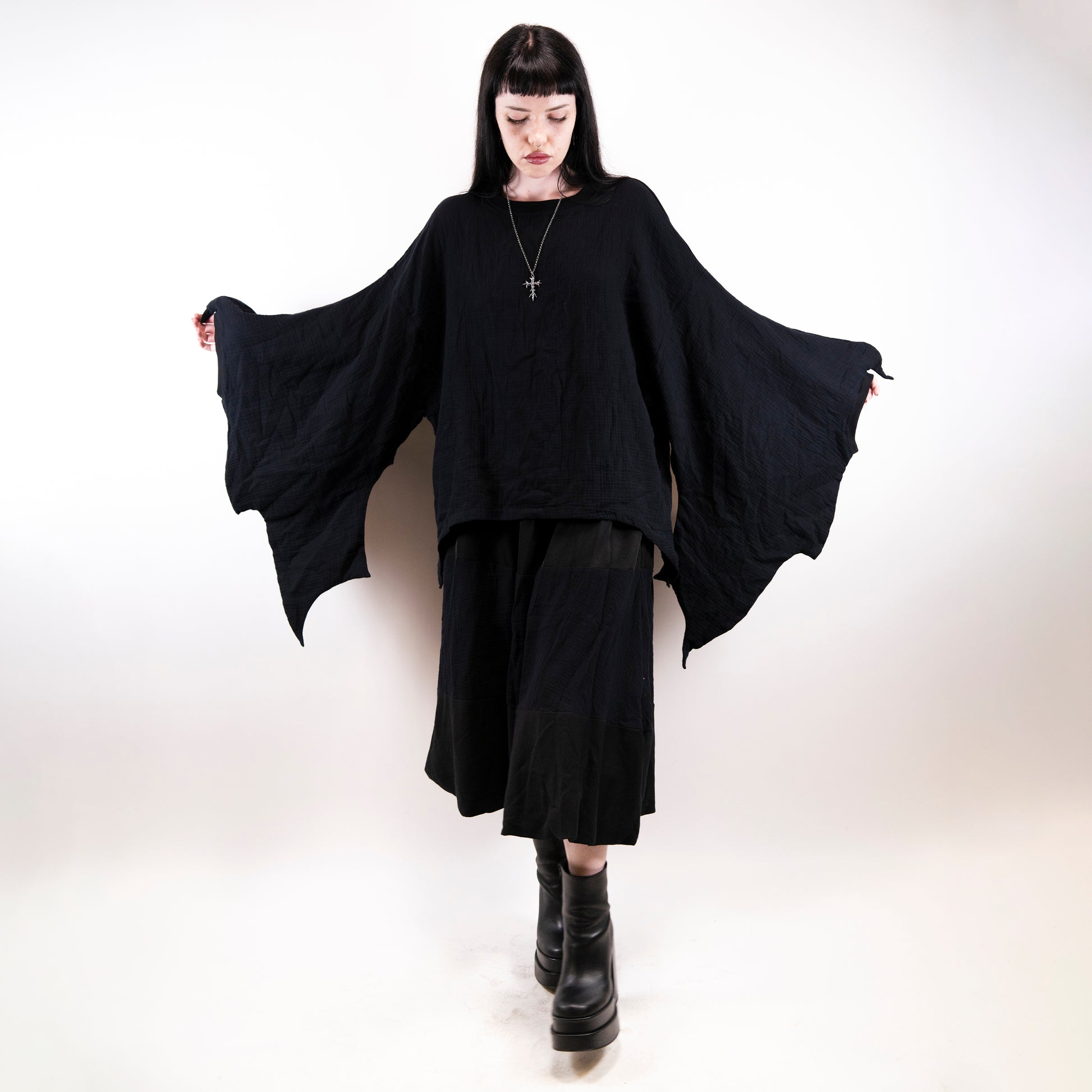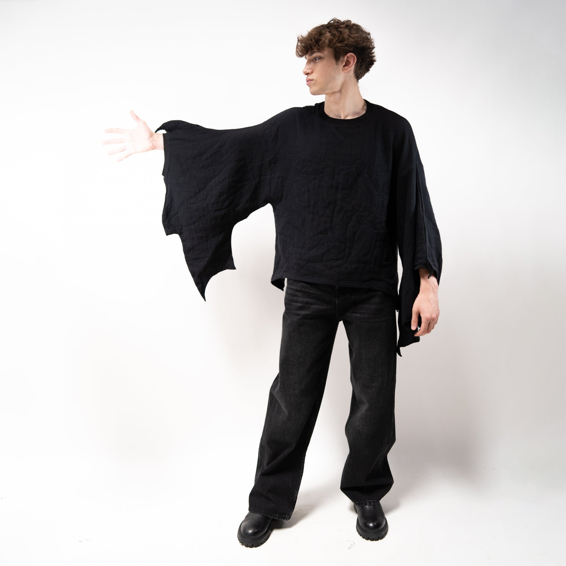我们的蝙蝠翼图案长袖衬衫第二版采用棉质平纹细布/纱布制成。我们选择这种面料是因为它透气性极佳,吸湿排汗,而且重量仅为126克/平方米,非常适合夏季穿着。此款衬衫摒弃了第一版衬衫上的鬼缝线迹。我们还更新了版型,使其针脚更加清晰,版型也更加宽松。