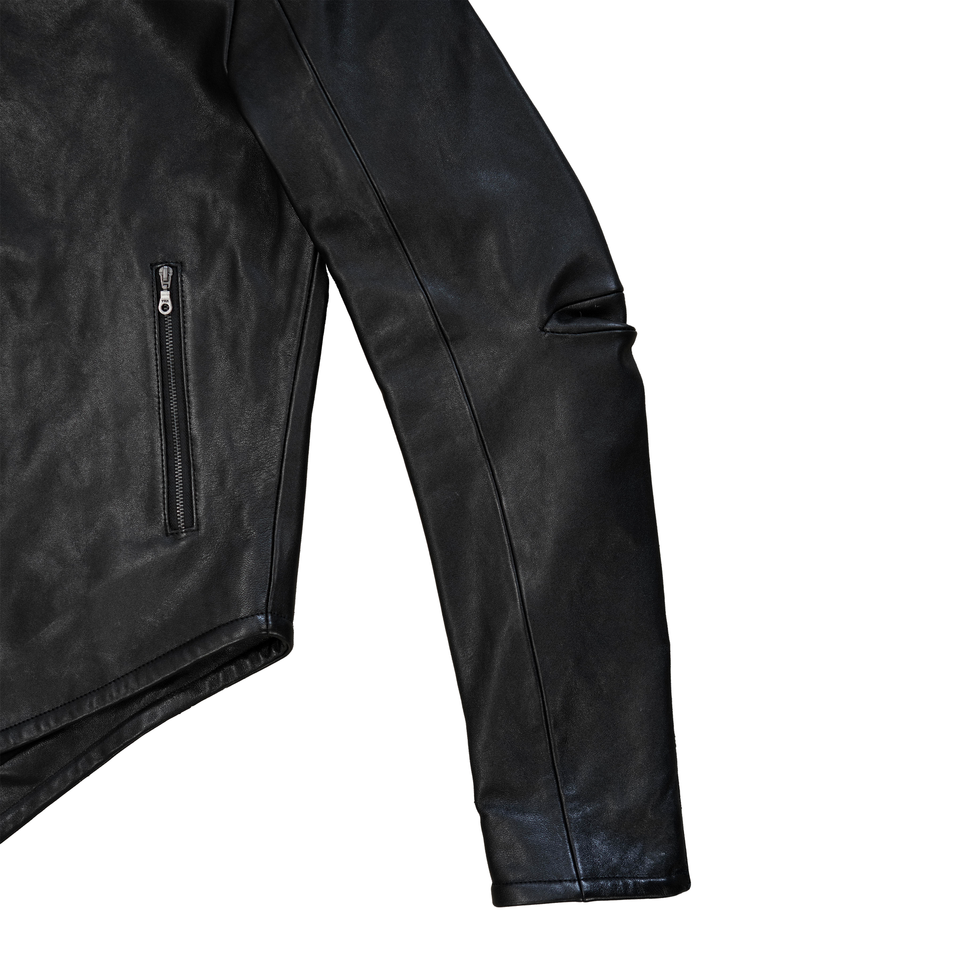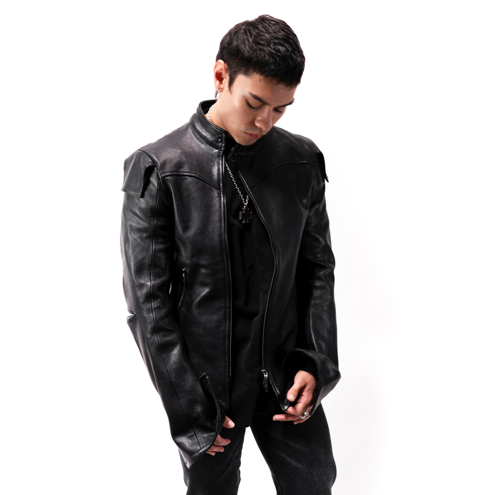 ✦ 特点:不对称主 YKK 拉链开合、YKK 拉链口袋、YKK 袖口、斜角下摆、加固肩部、肘部休息
